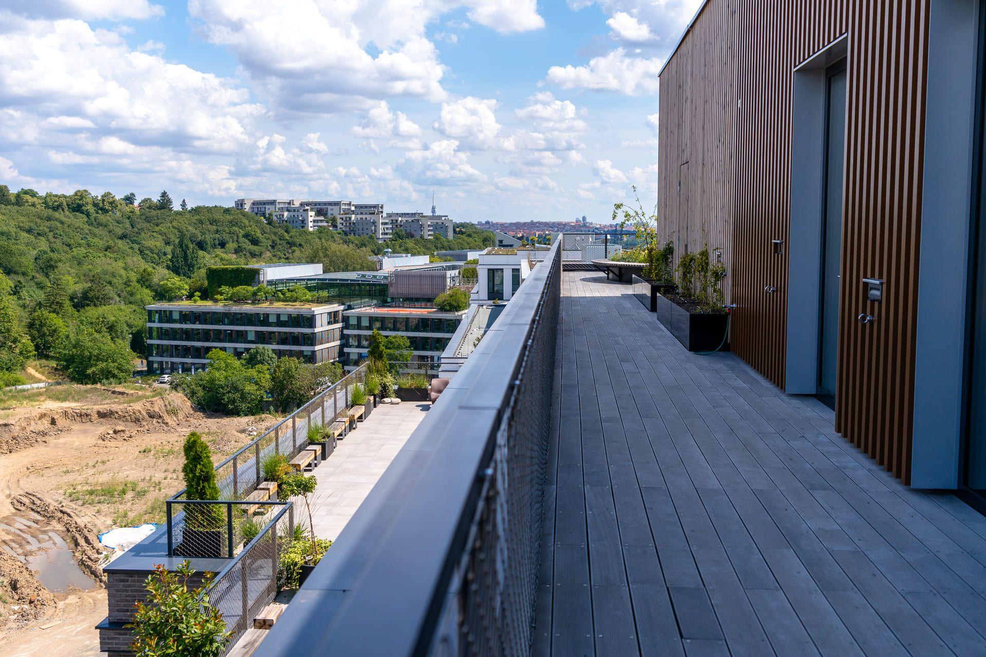 | Nový development zahrnuje rovněž rezidenční část se 460 byty a hotel se 166 pokoji. Budovy s názvem METALICA a LEGATICA nabízí svým nájemcům nejen vysoký standard, ale také mnoho dalšího - komunitní zahradu na střechách, velkolepé terasy s panoramatickými výhledy a přívětivé zázemí pro sportovce v podobě koláren a sprch. |